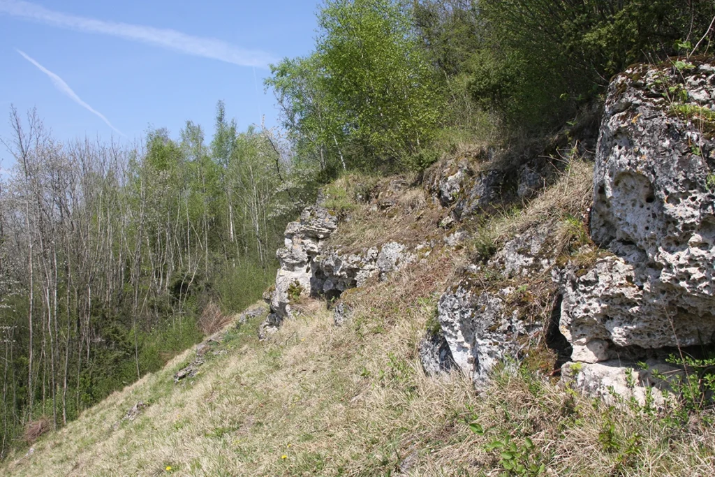 Le Coteau de Châtel de Feigneux, dans l’Oise, est un petit larris en cours de restauration connecté directement à une des dernières grandes pelouses calcaires de la Vallée de l’Automne : la pelouse de Russy-Bémont. Partez à la découverte de cet espace. Un sentier, à gauche de la sablière, vous invite à gravir la pente, laissant le bois en contrebas. Vous observerez alors une végétation rase typique. Plus haut, un éperon rocheux vous offrira une belle vue sur les environs.