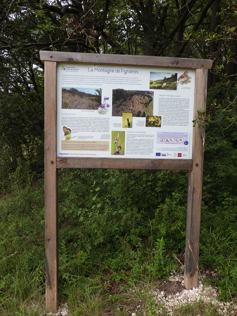 Aux portes de Montdidier, la Montagne de Fignières est l’un des plus beaux larris du département de la Somme. Découvrez, lors d’une balade nature, une flore et une faune originales et entrez dans un univers qui éveillera vos sens. Dès le mois d’avril, la floraison de l’Anémone pulsatille recouvre le larris d’un manteau violacé. Au printemps et en été, vous pourrez y découvrir une multitude d’orchidées et de papillons aux couleurs variées : jaune du Fluoré, bleu des Azurés, rouge et noir des Zygènes… Votre odorat sera lui stimulé par les plantes aromatiques, notamment le Thym et l’Origan. Enfin, la stridulation intense des Orthoptères (criquets et sauterelles) lors des chaudes journées d’été vous transportera dans la garrigue…