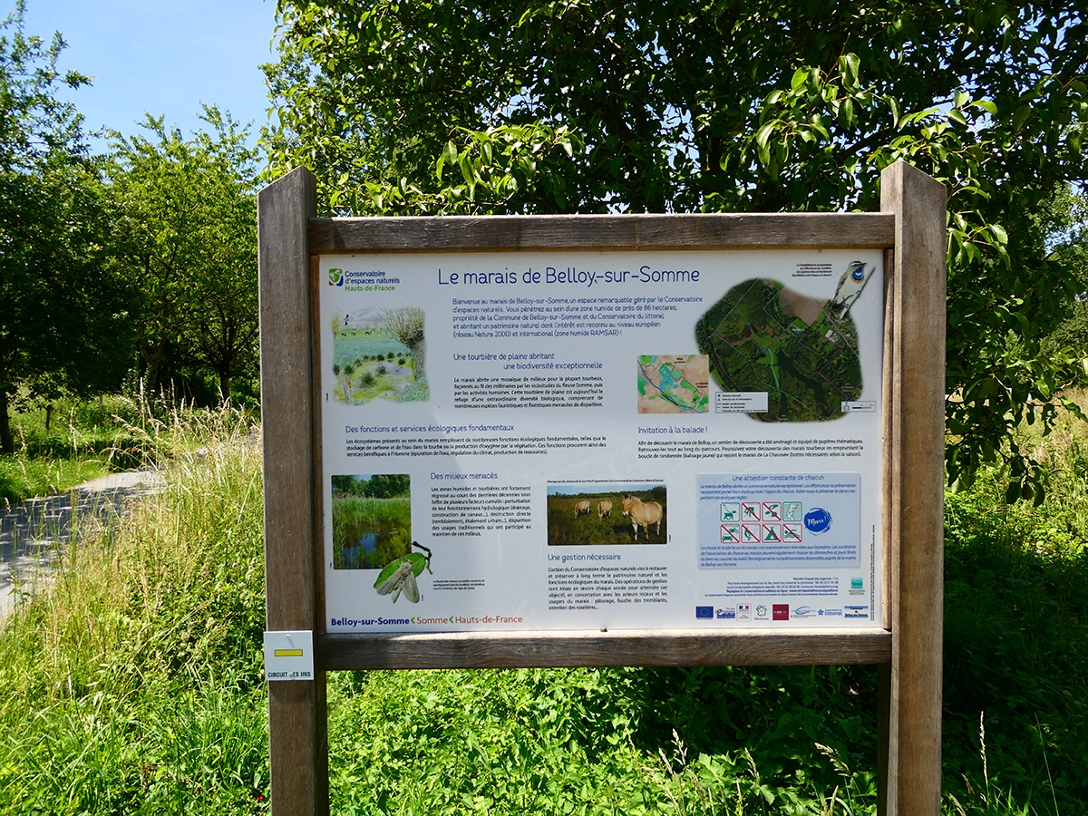 Situé au cœur de la vallée de la Somme, le marais de Belloy-sur-Somme constitue une entité préservée de près de 90 hectares à forte valeur écologique. La diversité et la qualité des milieux présents permettent l’expression d’une faune et d’une flore caractéristiques des marais tourbeux alcalins. Un sentier ponctué de panneaux pédagogiques permet de traverser le marais et ainsi découvrir les différents milieux qui le compose : étangs, radeaux tourbeux, roselières, boisements humides.