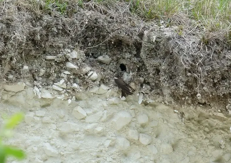 Sablière en fin d’exploitation, le site se recolonise lentement avec des zones en cours de boisement. Il présente un grand intérêt pour les pollinisateurs avec ses pelouses thermophiles fleuries et ses buttes de sable. L’Hirondelle de rivages y niche aussi à flanc de talus.